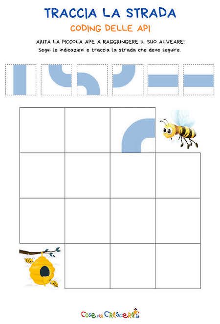 Vuoi provare questa attività? Scarica la scheda di coding con ape da stampare. Un’occasione unica per imparare giocando!