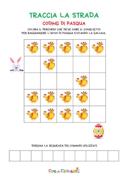 Nel sito Cose per Crescere trovi tante altre schede di coding da stampare per la Pasqua e non solo! Ecco alcune attività consigliate: