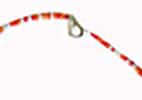 - Iniziare da uno dei due lati della collana: Infilare 14 perline su ognuno dei 2 fili di nylon, alternando i colori.