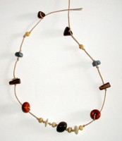 Può essere realizzata con perle, perle di legno, d’osso, di legno… e con un laccetto di cuoio o un cordoncino. Ognuno la componga seguendo la propria vena creativa!