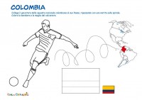 Colombia: calciatore da colorare Disegno di un giocatore con la maglia della squadra nazionale della Colombia da stampare e colorare. I bambini dovranno anche colorare la bandiera del Cile e collegare il calciatore al proprio Paese. DISEGNO DA STAMPARE Cliccare sul disegno per stamparlo:
