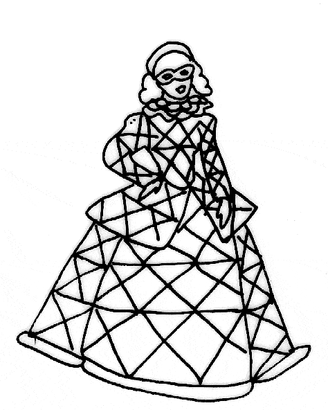 Colombina da colorare Disegno di Colombina, la fidanzata del celebre Arlecchino, da stampare e colorare. Cliccare sul disegno per stamparlo: