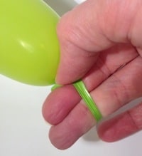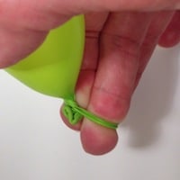 - Annodare l’estremità del palloncino e l’estremità sgonfia con un semplice doppio nodo (come per i lacci delle scarpe).