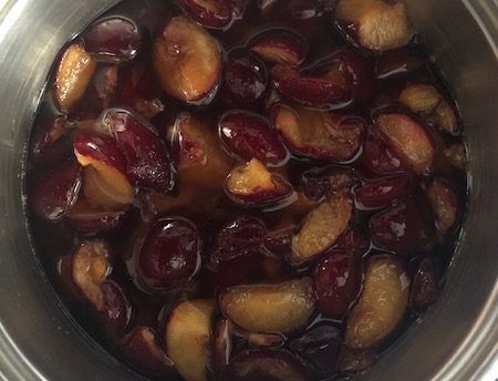 - Dopo 1 ora, trasferire la miscela di prugne e sciroppo in una pentola a fondo spesso.