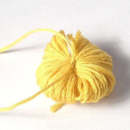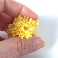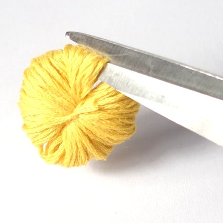 - Aprire il ponpon e dargli forma con le dita. Tagliare eventualmente i fili piĂą lunghi che sporgono dalla pallina.