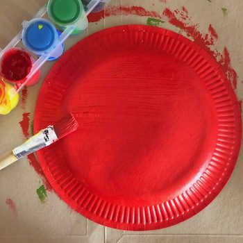 - Dipingi il piatto di carta di rosso e lascialo asciugare;
