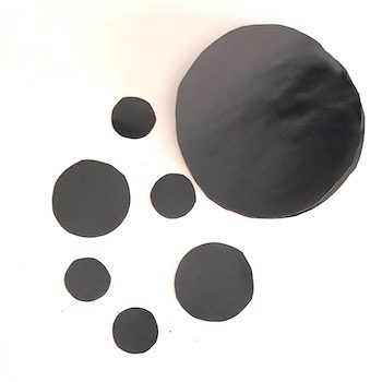 Disegna e ritaglia 6 o 8 cerchi di dimensioni diverse sul cartoncino nero (puoi usare il compasso o oggetti come monete da scontornare con la matita).