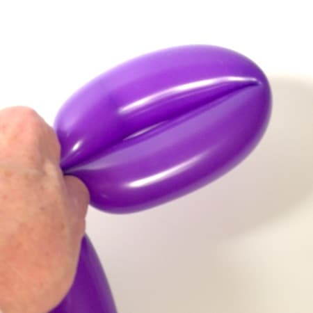 - Con l’altra mano, pinzare delicatamente il palloncino a livello del nodo rientrato, prenderlo e fare una torsione.
