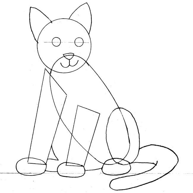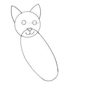- Aggiungi un grande ovale che sarĂ il corpo e un secondo ovale, piĂą largo e piĂą piccolo che sarĂ una parte di una delle zampe posteriori.