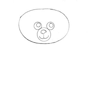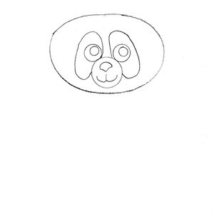 All’interno dell’ovale, disegna due piccoli cerchi per gli occhi e un nasino a triangolo rovesciato. Aggiungi una bocca sorridente: bastano due curve semplici per renderlo subito dolce.