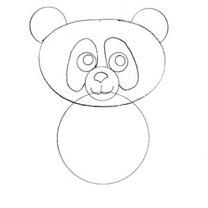 Sotto la testa, disegna un cerchio un po’ più grande: sarà il corpo del tuo panda. Deve sembrare morbido e rotondo, come un peluche!