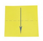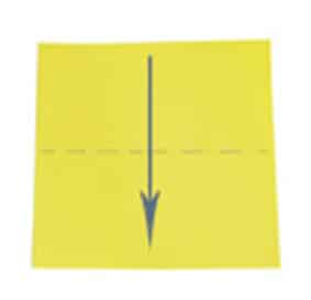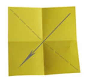 - Segnare le piegature: piegare il quadrato in due, dall’alto in basso. Aprirlo. Piegare il quadrato in due, da sinistra e destra. Aprirlo. Capovolgere il quadrato di carta. Piegare a triangolo, in modo da segnare la diagonale. Aprirlo. Segnare l’altra diagonale nell’altro senso, allo stesso modo. Fasi 1, 2, 3 dello schema.