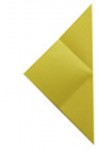 - Piegare i lati di sinistra e destra del rombo verso la linea centrale. Piegare il triangolo in alto verso il basso (come nell’immagine) per segnare la piega e aprirlo. Fase 6 e 7 dello schema.