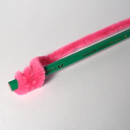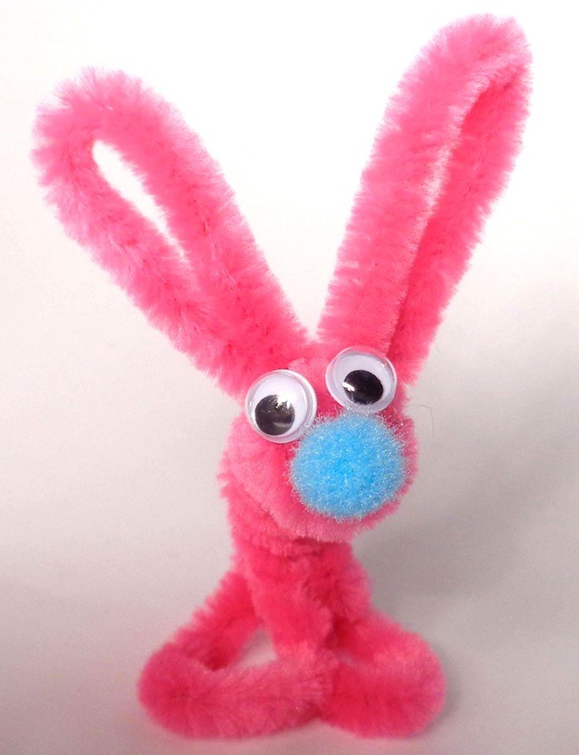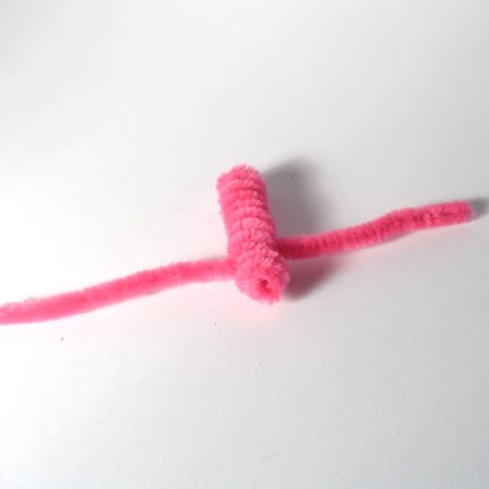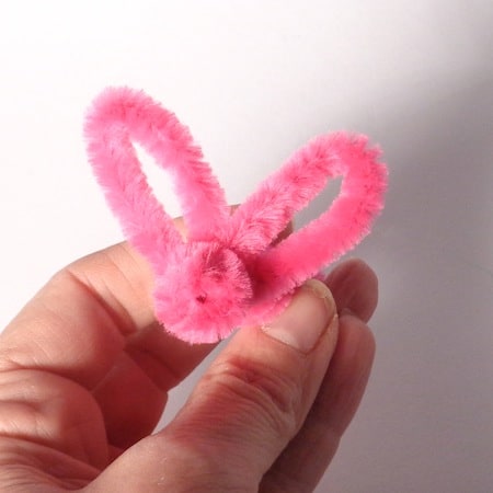- Prendere uno degli scovolini più corti, e fissarlo facendogli fare un giro nel suo punto centrale sul “corpo” del coniglio a circa 1 cm da una delle estremità.