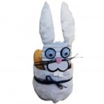 - Disegnare occhi, naso, muso e denti del coniglio su un foglio di cartoncino. Ritagliarli ed incollarli sulla bottiglia.