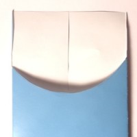 • Capovolgerlo, piegare un lato dopo l’altro, come nell’immagine, e incollare un bordo sopra l’altro. Lasciare asciugare.