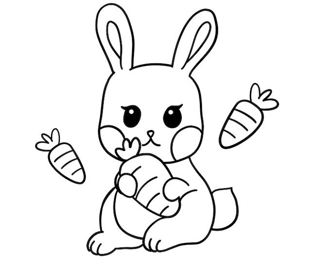 Il disegno di un coniglio da colorare per bimbi piccoli, particolarmente adatto ai bambini dai 2 ai 5 anni e ai bambini dell’asilo e della scuola dell’infanzia. Oltre a rappresentare un soggetto particolarmente amato dai più piccoli, un dolce coniglietto, il disegno è facile da colorare perché con spazi ampi e ben definiti. I bambini potranno dare libero corso alla loro fantasia e scegliere i colori che preferiscono per questo simpatico coniglio mangiatore di carote.