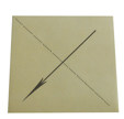 - Segnare le piegature: piegare il quadrato lungo la prima diagonale (formando un triangolo), aprire, piegare allo stesso modo lungo l’altra diagonale, aprire, piegare il quadrato in due lungo la linea centrale orizzontale. Aprire. Fase 1,2 e 3 dello schema.