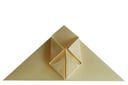 - Piegare le due punte di sinistra e destra verso l’alto. Si ottiene un rombo. Piegare la due punte laterali del rombo verso l’interno, come nell’immagine. Fase 5 e 6 dello schema.