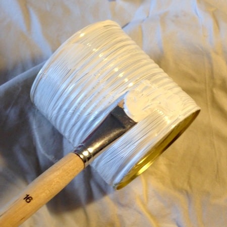 - Dipingere la scatola di conserva. Lasciare asciugare e passare una seconda mano di bianco. Lasciare asciugare.