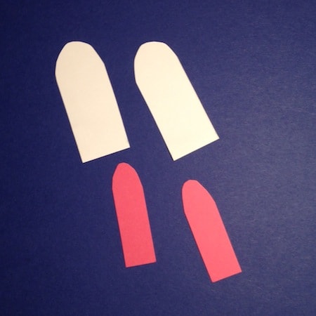 - Disegnare le sagome delle orecchie interne. Disegnare 2 rettangoli di circa 5,5 cm x 1,5 cm. Ritagliarli e arrotondare la parte superiore di ogni rettangolo.