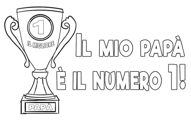 Un disegno da colorare per bambini con una bella coppa numero 1 per la Festa del papà. Un disegno da regalare il 19 marzo magari arricchito con una dolce dedica, da stampare gratuitamente e adatto ai bambini della scuola primaria e della scuola dell’infanzia.