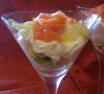 - Finire la composizione con una fettina di salmone affumicato tagliata in 3 pezzi, sistemata in modo armonico.