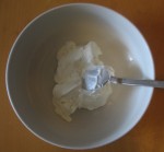 - Amalgamare gli yogurt con il restante succo di limone, un po’ di erba cipollina tagliata a pezzetti, l’olio d’oliva e.v., sale e pepe q.b.