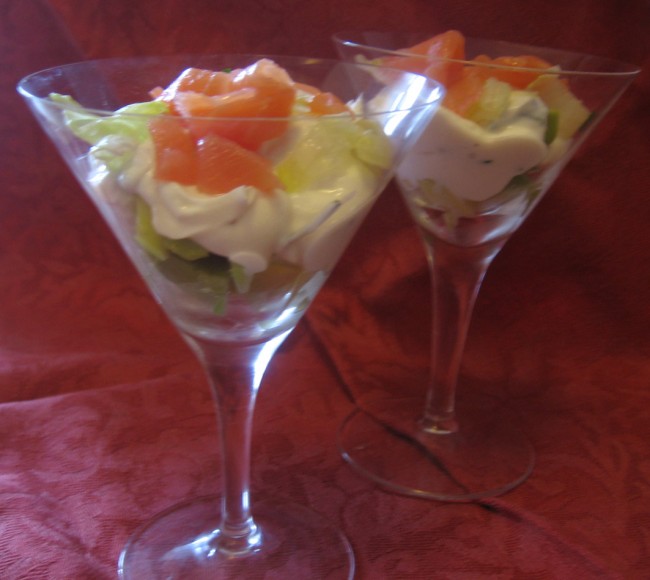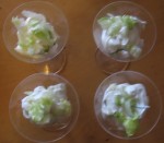 - Mettete dell’avocado sul fondo di ogni coppetta o bicchierino. Ricoprire con salsa allo yogurt.