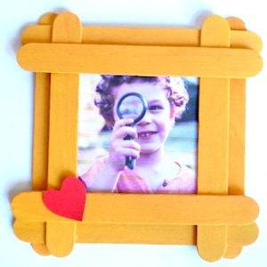 - Disegnare un cuore su un pezzo di cartoncino rosso, ritagliarlo ed incollarlo sulla cornice. Lasciare asciugare.