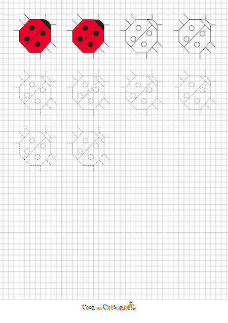 Una cornicetta con coccinelle da disegnare e da colorare, adatta ai bambini della scuola primaria. Un cornicetta da stampare gratuitamente e da proporre ai bambini per festeggiare e disegnare la primavera. Una coccinella da colorare in un primo momento poi da disegnare seguendo le linee tratteggiate ed infine da disegnare in maniera autonoma seguendo lo stesso schema.