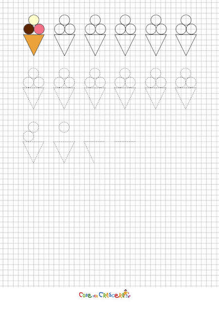 Il disegno a quadretti è strutturato per guidare i bambini passo dopo passo nella creazione di un delizioso gelato con tre palline. Ecco alcuni suggerimenti su come utilizzare al meglio questo disegno: