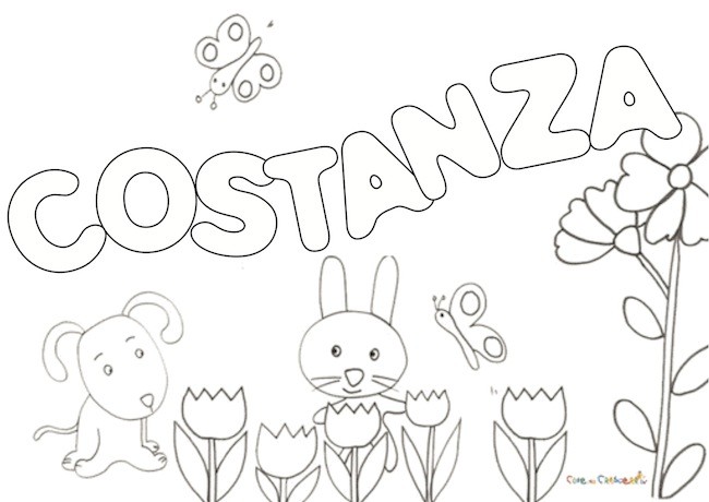 Disegno del nome COSTANZA pronto da stampare e da dare alla vostra bimba da colorare, per divertirsi con il proprio nome ed impararne i caratteri.