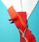 Fissa le strisce alla punta bassa dell’aquilone con una pinzatrice.