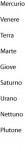 - Scrivere il nome di ogni pianeta. Se preferite, cliccare sullo schema dei nomi per potere stampare, ritagliare e incollare i nomi dei pianeti: