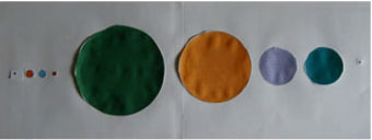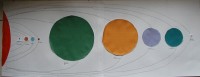 - I bambini più grandi, che sanno utilizzare un compasso, possono disegnare i vari pianeti, colorarli e ritagliarli. Le misure del raggio di ogni pianeta (per cercare di rispettare le proporzioni) dovranno essere: