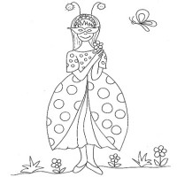 Costume da coccinella da colorare Disegno di una splendida ragazza travestita da coccinella per festeggiare il Carnevale. Cliccare sul disegno per stamparlo: