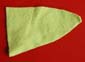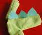 - Ritagliate un grande triangolo nel tessuto verde. Cucite il triangolo sul rovescio, chiudendolo, in modo da formare una grande coda. Ribaltatelo. Potete, eventualmente, riempire la coda di cotone o carta per darle piĂą volume.