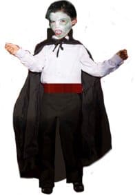 Un’idea per un costume da vampiro, da realizzare con quello che avete in casa. Qualche vestito di tutti i giorni e una semplice mantella saranno sufficienti. Se non avete una mantella, potete crearla con un pezzo di tessuto nero o con un grande sacco nero della spazzatura.
