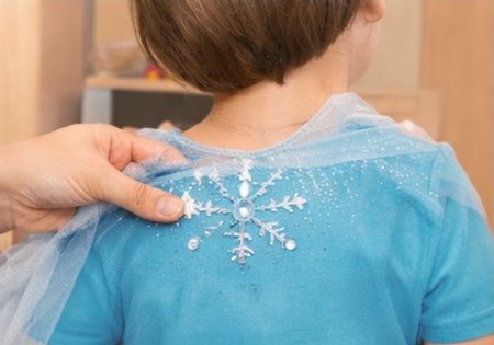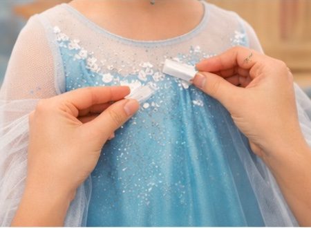 Il mantello è l’elemento che rende il costume Frozen fai da te davvero speciale. Basta ritagliare un pezzo di tulle o stoffa trasparente e fissarlo alle spalle con qualche punto di cucitura o del velcro.