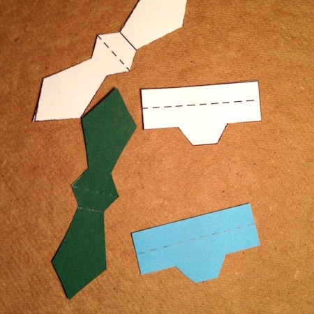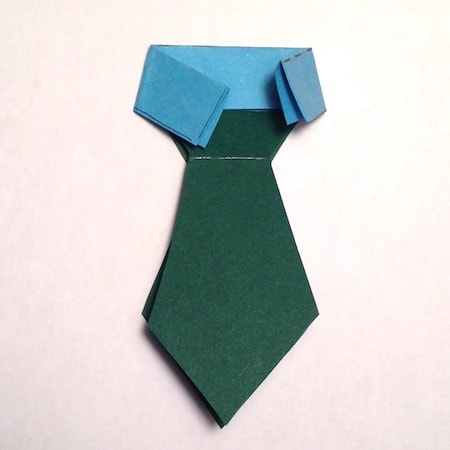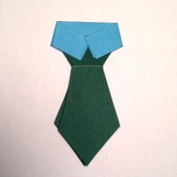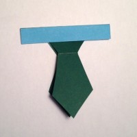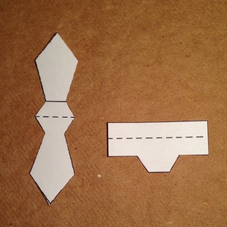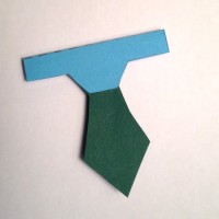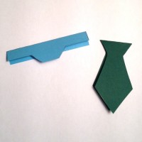 - Piegare ogni sagoma lungo la linea tratteggiata. Abbiamo la cravatta e il collo di camicia. Il davanti della cravatta è la parte con la linea nera.