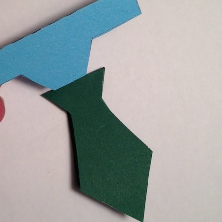 - Ritagliare le sagome colorate. Con la matita, riportare le linee tratteggiate e la linea piena sulla cravatta.