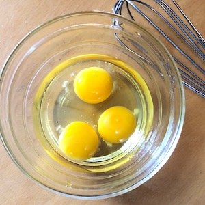 - Nel frattempo, rompere le uova in una ciotola e sbatterle con una forchetta o una frusta.