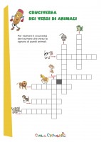 Un cruciverba per bambini divertente da stampare e risolvere. Per risolverlo, i bambini dovranno trovare il verbo che definisce il verso che fa ogni animale disegnato nel cruciverba. Come fa il leone? Come fanno l’elefante, il cane, il gatto e…? Un cruciverba da stampare gratuitamente per divertirsi e imparare qualche parola di più.