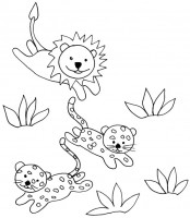 Cuccioli di felini da colorare Cuccioli di felini da stampare e colorare: un leoncino al quale inizia a spuntare una splendida criniera si diverte e gioca con due piccoli ghepardi. Cliccare sul disegno per stamparlo: