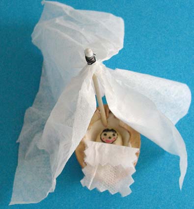 - Sistemare il neonato nella culla e coprirlo con la sua copertina. Se il bambino/a lo desidera, può dipingere la parte esterna del guscio di noce.