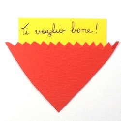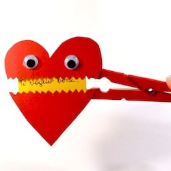 Un’idea di lavoretto da regalare per la festa della mamma: un grande cuore rosso che apre la bocca e porta un dolce messaggio a sorpresa. Lo abbiamo fatto usando del cartoncino colorato e una molletta di legno per il bucato che abbiamo dipinto di rosso. Un regalo perfetto anche per San Valentino!