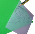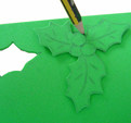 - Capovolgere il lavoro e infilare un dischetto di gommapiuma (non tutte nello stesso buco). Incollare il dischetto sul retro delle foglie.
