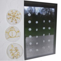 - Con i pennarelli, decorare i dischi di carta da lucido. Disegnare delle stelle, dei pupazzi di neve, dei fiocchi di neve, delle scritte…