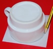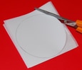 - Con un compasso o aiutandosi con una tazza o un bicchiere (come nell’immagine) tracciare un cerchio sulla facciata superiore della carta da lucido piegata. Ritagliare il cerchio.